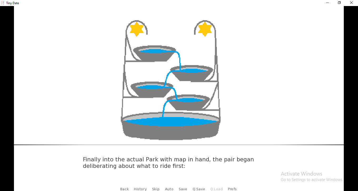 Scarlet and Sapphire, a pair of stick figures, go to a theme park for their first date.